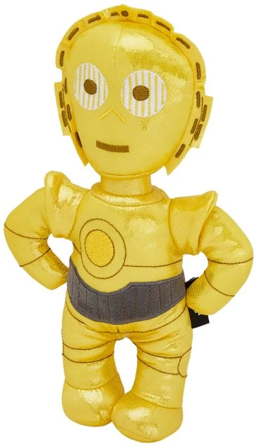 - Shiny C-3PO plush designed for cuddling and play makes a great addition to a Star Wars fan’s toy box.