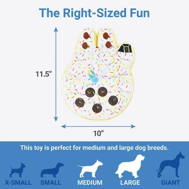 Playtime just got a whole lot sweeter with a Millennium Falcon™ cake squeak toy just for your bestie. Let the legendary fun begin with all the squeaks and the sweets this side of the galaxy. Bring out this squeaky plushie for all your furball’s favorite games, from fetch to interplanetary hide-and-squeak, and take playtime into hyperdrive any time. Made of soft Velboa and corduroy plush, this toy is perfect for playtime and naptime on any planet, too. Available only at Chewy.