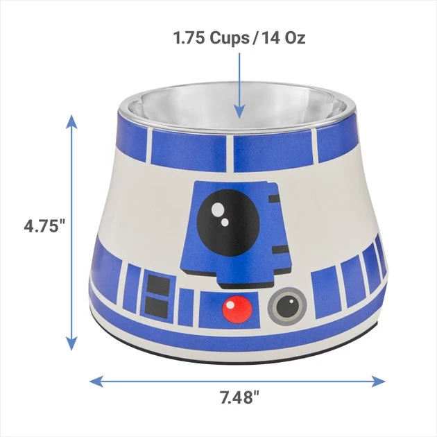 - This STAR WARS R2-D2 elevated stainless-steel bowl is perfect for the furry and non-furry STAR WARS fan in the house.