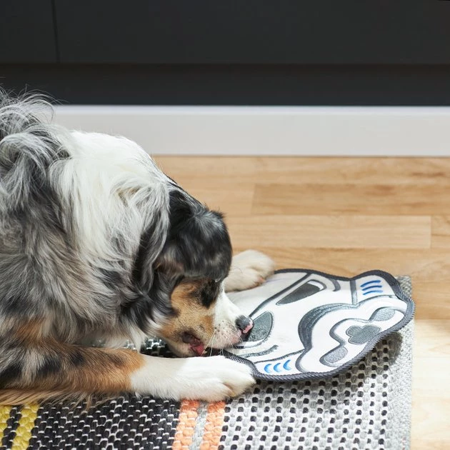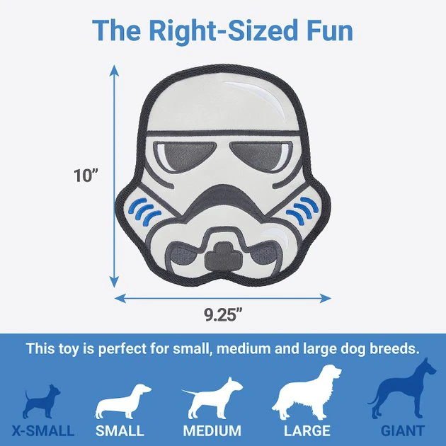 Your pup is guaranteed to have a blast with this Stormtrooper toy, available only at Chewy! This thin, stuffing-free toy puts a twist on the traditional plush with a soft cover, ballistic nylon and a flat shape that’s easier to catch, carry and play with than a bigger, fluffier toy. Inside, there are four squeakers to keep them focused on all the four-legged fun and put them into play mode for a good interactive game sesh! Squeak him, toss him, catch him, fetch him—this classic Star Wars™ baddie is up for whatever galactic good times your dog gets up to.