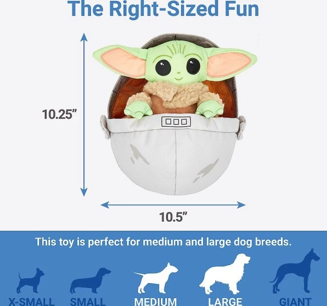 - Grogu plush toy squeaks to get your dog excited about playtime.