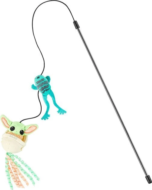 - Grogu teaser toy includes two catnip-stuffed plush toys on a super bouncy string.