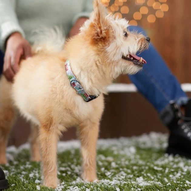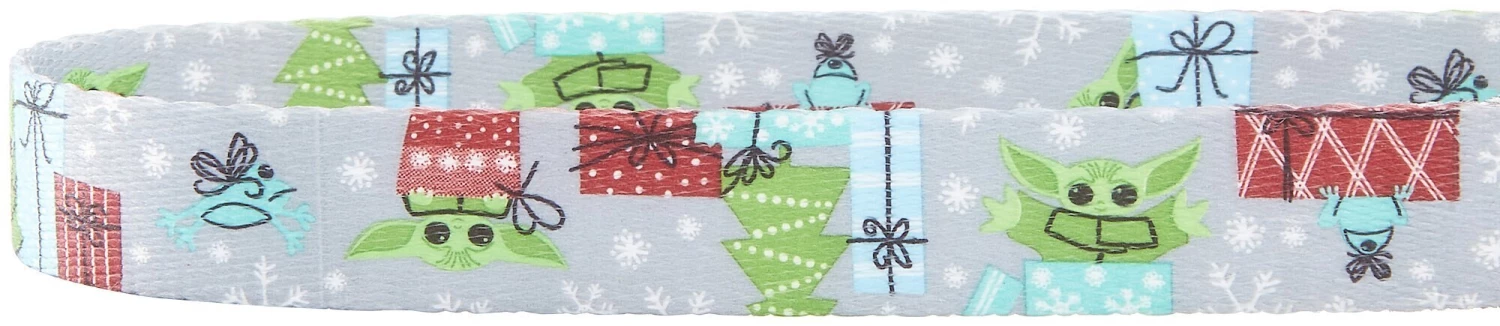 This holiday-themed Star Wars: The Mandalorian™ collar, featuring The Child and lots of brightly colored presents, will keep your canine companion feeling festive all through the holiday season. Made with durable, high-quality polyester that has an Ultra-Weld™ seal, it’s strength-tested to withstand up to seven times the maximum recommended weight for each size. Putting it on your dog is easy with the plastic rounded-edge buckle, plus the nickel-coated D-ring makes it simple to snap a leash on and get going. They come in different sizes you can adjust for a custom fit and a separate ring to attach an ID tag. Grab the matching leash and harness to complete the whole walkwear set, only at Chewy.