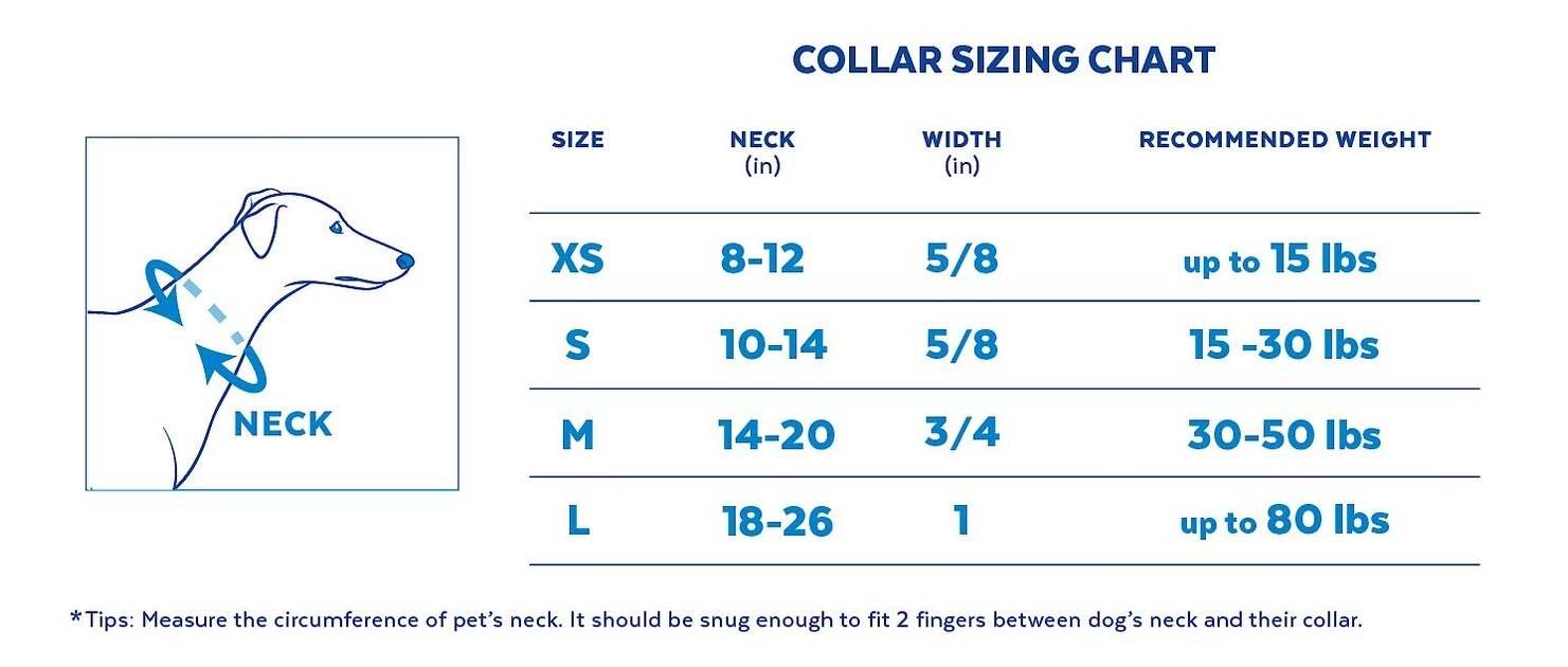 | Size | Neck Size | Collar Width | Recommended Pet Weight |